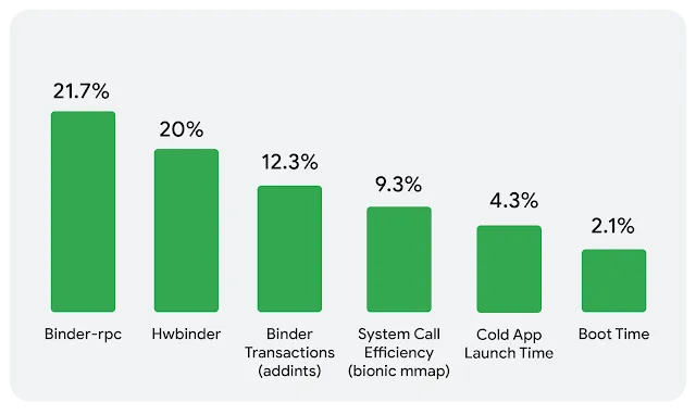 通过在受控实验室中使用代表性Profile,我们在若干关键指标上看到了可观的改善(在 Pixel 设备,针对 6.1、6.6 与 6.12 内核版本进行测量)。这些收益体现为更流畅的界面、更快的应用切换、更长的电池续航与整体更好的设备响应性。关于这些内核版本的 AutoFDO Profile详情见内核仓库(android16-6.12 与 android15-6.6 的 afdo 目录)。